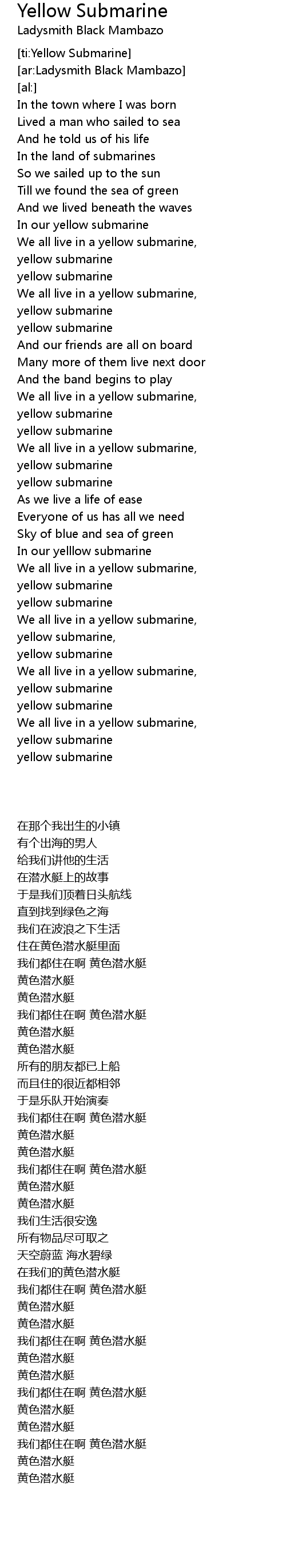The Beatles - Yellow Submarine, Official site: http://www.thebeatles.com Facebook: https://www.facebook.com/thebeatles/ Instagram: . We Have got 13 picture about Yellow Submarine Lyrics images, photos, pictures, backgrounds, and more. In such page, we additionally have number of images out there. Such as png, jpg, animated gifs, pic art, symbol, blackandwhite, pics, etc. "The Beatles - Yellow Submarine (Karaoke Version)", Love Karaoke? Our brand new app is here! Download now for FREE https://singking.link/yt-desc Karaoke sing along of "Yellow . "Yellow Submarine Lyrics (Em portugu\u00eas e ingl\u00eas)", Para todos os aficionados dos Beatles, têm aqui as letras da música yellow submarine em português e inglês. Espero que ..